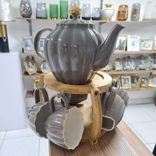 Comprar online en Decoart Importaciones SAS Tetera set pocillo de porcelana base madera Felanas Decoart